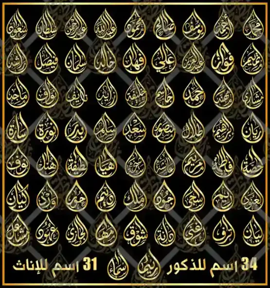 📋 قائمة مخطوطات أسماء الذكور والإناث بالخط العربي: