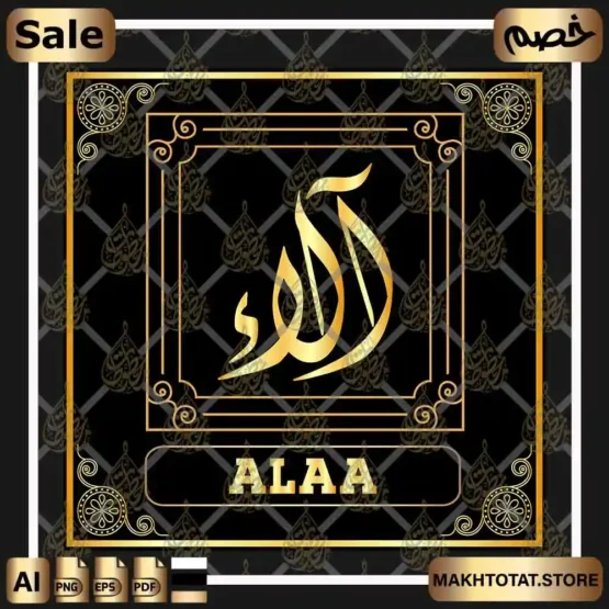 اسم آلاء مزخرف بالخط الديواني Alaa Name In Diwani Calligraphy من متجر مخطوطات ،اسم آلاء لأعمال التصميم والمونتاج ،متوفر بصيغ PNG ,EPS ,PDF ,JPG.